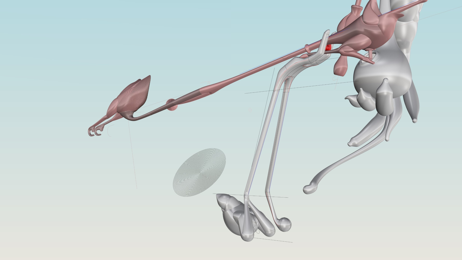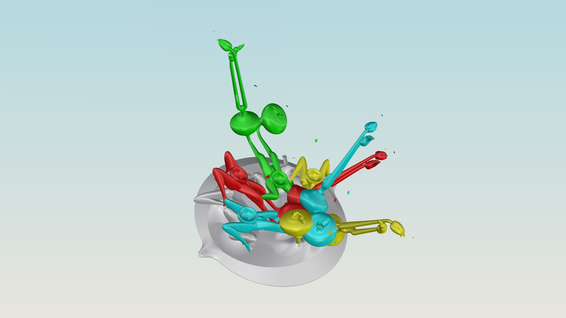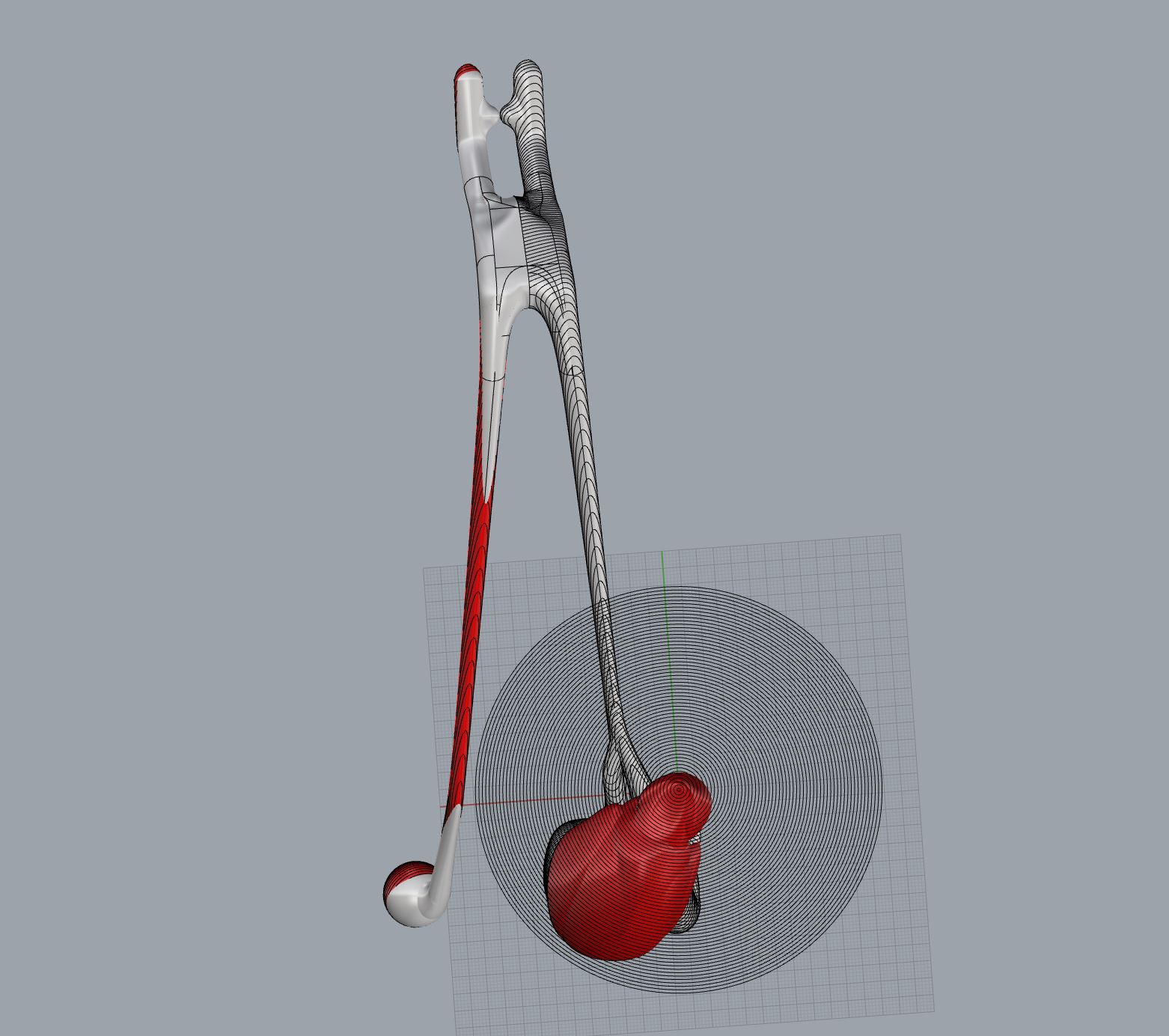 The tool-shaped surfaces provide a poetic alikening to ridges defined by sunlight on the plant forms, most of which are eventually hidden from the observers upon the joining of individual parts. The machine’s projection distorts the digital model through its interpretation of the code, dismissing undercut ‘limbs’ and produces an augmented display of body lengths, thus distorting the digital reading of object-centric measurements.
