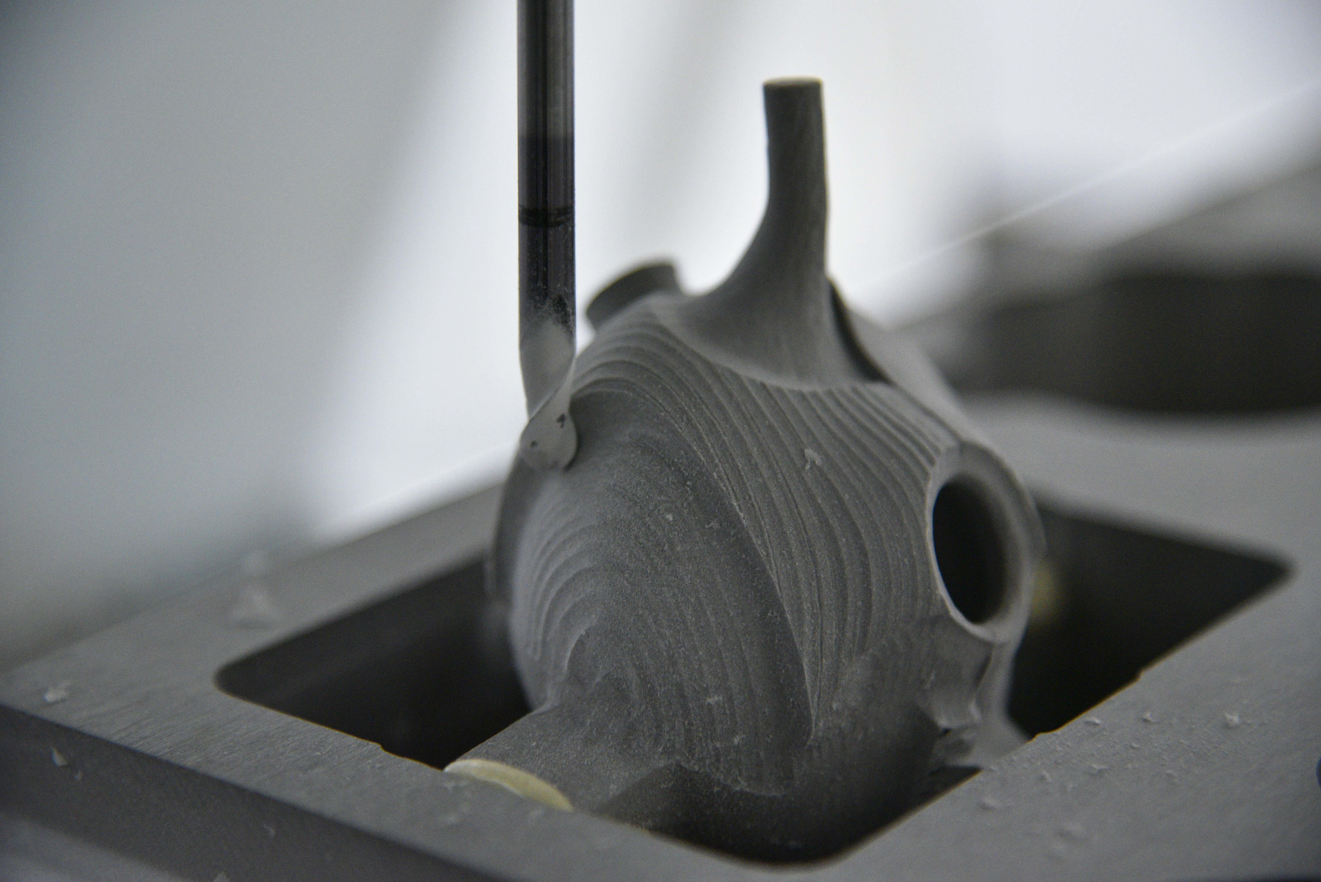 In making the project, machining is used to remove excess material and reveal the objects; the process in itself is almost carnal, akin to undressing a flower of its petals, or tearing into a body to access the heart. With the added factor of automation, the maker envisages the material as his captive at the mercy of a machine that hacks away at its body. Now operator, the maker is aware of the restraints by which an acceptable outcome is generated and thus, guides the machine’s hands.